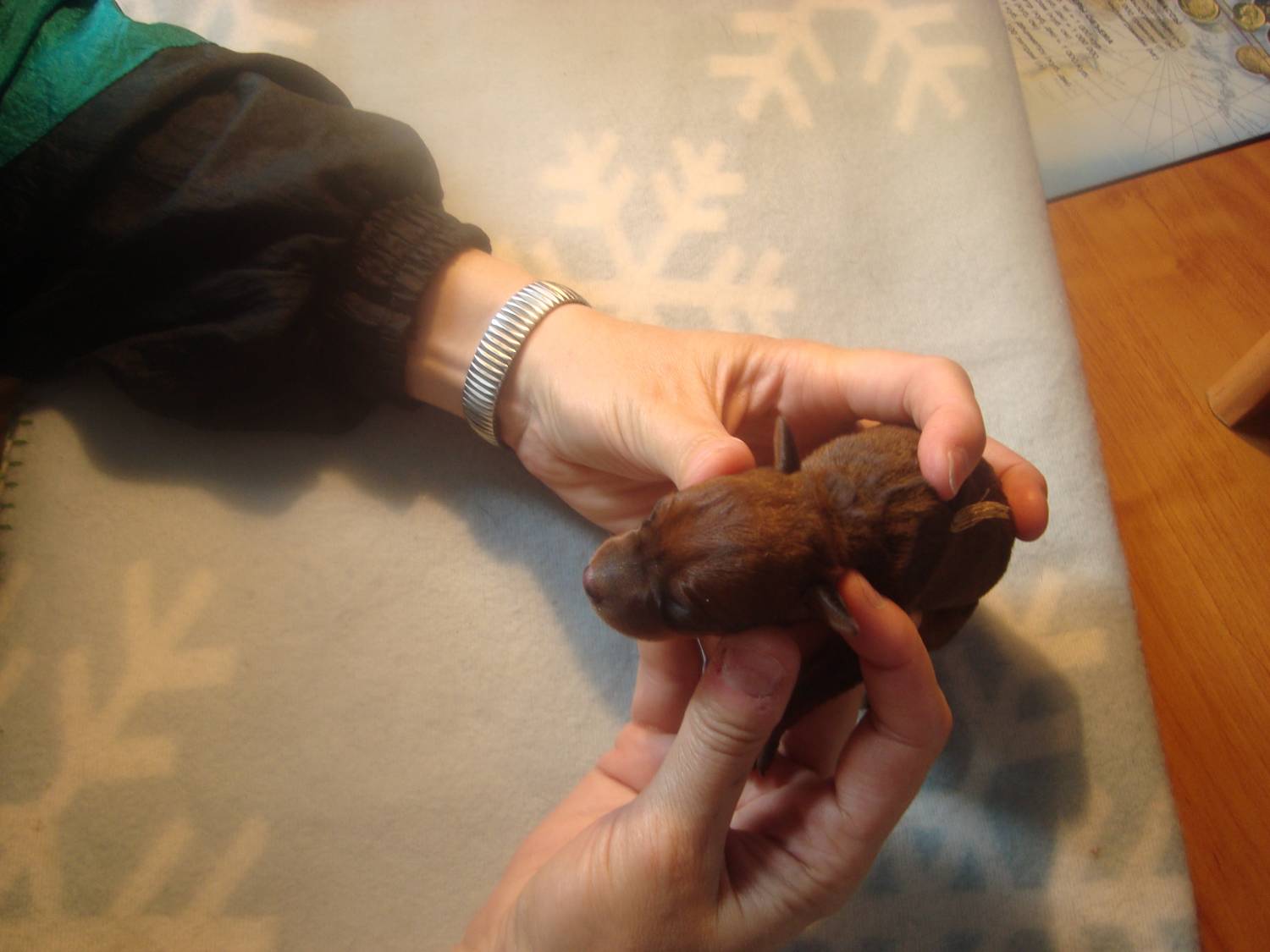 Наш самый маленький щенок, последыш. Кличка - Лихой Малый. Вес при рождении 160 гр.